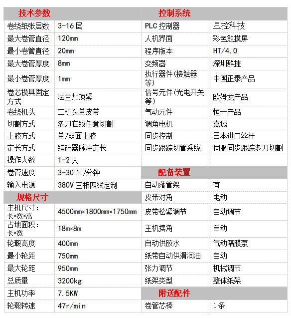 生產(chǎn)螺旋型紙管從涂膠、卷繞、到按要求多刀切割一次完成。